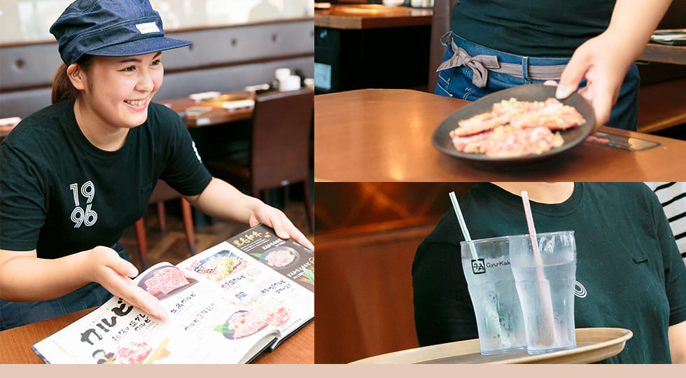 「将来はアパレルの仕事に就きたい!」と、中学生のころから思っていました。大学生になり、アルバイトを始めることにしたのですが、アパレルは、どうしても時間の融通がつきにくかったので、他の仕事を探すことにしたんです。アパレルの仕事は接客が重要ですから、もしアルバイトをするなら、とにかく接客が身につくところ、と決めていました。牛角松戸アネックス店は、自分が何度か食事に来たときに、「接客を、とても大事にしているな。」と強く感じていました。夕方から入れる飲食店は、アルバイト先として魅力があったのですが、「飲食店でアルバイトするなら、牛角で!」と思ったんです。
