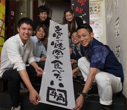 あるとき、お客様に妊婦さんがいらしたことがありました。「いつ、お生まれになるんですか?」と、少し話をきいてみたところ、来週から入院するので元気づけに焼肉を食べにいらっしゃった、ということがわかりました。そこから、アルバイトの皆がそれぞれ、アレルギー表を持って行ったり、「椅子が硬くないですか?」とクッションを持って行ったり、お腹にかからないように、と前掛けをお奨めしたり、と、とにかくくつろいでいただけるようにと、全員でとても良いチームワークを発揮できました。妊婦さんご自身も、お連れのご主人も、本当に喜んでくださって、あの時は、とても感動しました。僕のアルバイトの一番の思い出です。